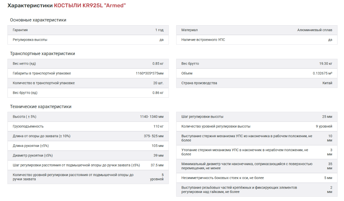 Костыль легко регулируется по высоте под рост пользователя с помощью кнопочного фиксатора. Размер M максимальная высота - 134 см. Для безопасного передвижения в зимнее время костыль оснащен противоскользящим устройством, которое можно убрать при помощи штыря. Резиновые рукоять и подмышечный упор не проскальзывают и гарантируют надежную фиксацию костыля в руке и подмышкой. Специальный пластиковый наконечник защитит от проскальзывания, а также не позволит костылю повреждать напольные покрытия.