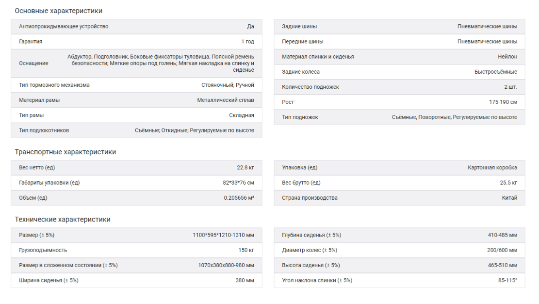 Для полной подстройки можно настроить высоту, угол наклона спинки и ее положение по отношению к задним колесам. Комфорт