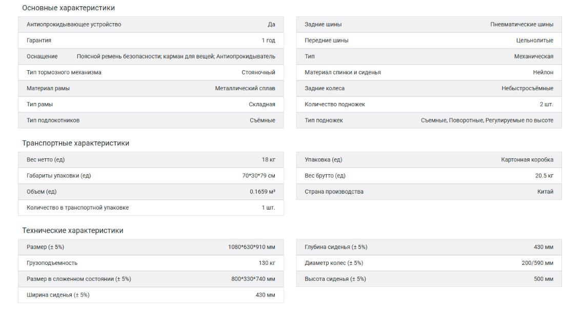 Коляска управляется рычажным механизмом, состоящим из рулевого и тягового рычагов. С их помощью пользователь может самостоятельно управлять коляской, задавая скорость и направление движения. Рулевой рычаг расположен под правую руку. Каркас коляски изготовлен из полых металлических трубок — он лёгкий и очень прочный. Раму можно легко сложить без дополнительных инструментов, просто потянув сиденье наверх. В таком виде коляску удобно хранить, переносить или перевозить в багажнике. Мягкое сиденье комфортной ширины изготовлено из прочного и дышащего нейлона. Этот материал долговечен и максимально прост в уходе. На спинке кресла расположен вместительный карман для вещей, которые могут пригодиться на прогулке. Подлокотники кресла смягчены накладками и снимаются для облегчения пересаживания. Их ступенчатая форма позволяет подъезжать вплотную к столу. Кресло оснащено поворотными подножками, которые откидываются для удобства пересаживания и снимаются для компактного хранения и транспортировки. Обе пары колёс снабжены пневматическими шинами, сглаживающими неровности дороги. Это делает прогулку максимально комфортной и безболезненной для пользователя. На задних колёсах коляски расположены стояночные тормоза для надёжной фиксации во время остановки. Для дополнительной безопасности в тёмное время суток на задних колёсах предусмотрены светоотражающие катафоты. Для дополнительной фиксации пользователя предусмотрен прочный регулируемый ремень с застёжкой.