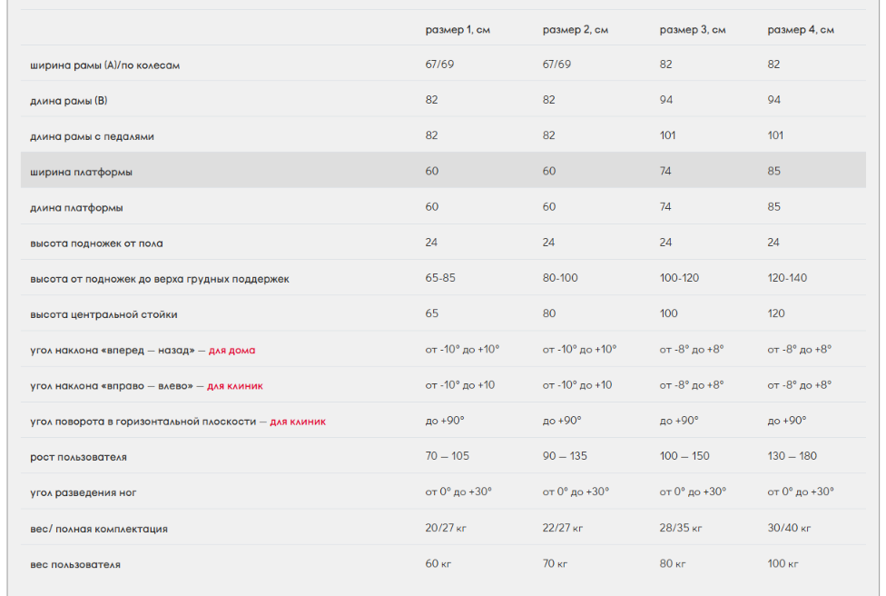 Дополнительная комплектация: Стол: Размер 1-2; Размер 3-4.