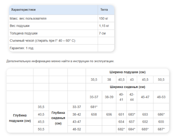 Глубина подушки: 35.5 - 45.5 см
