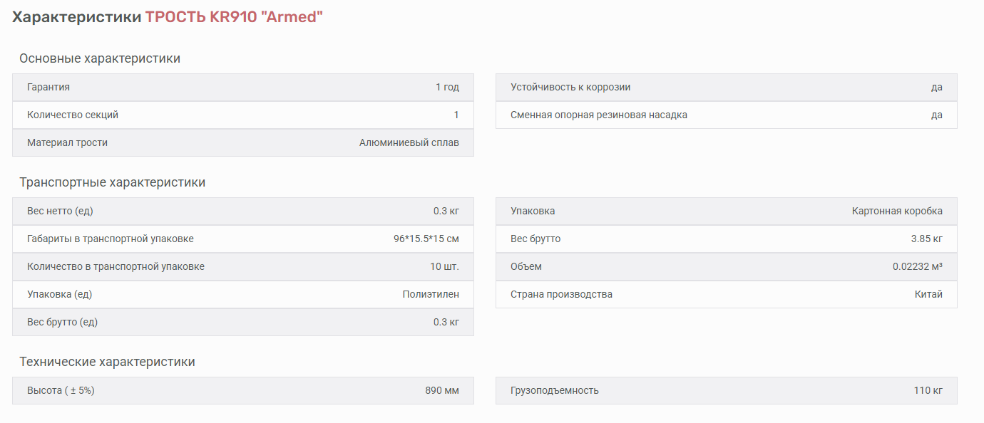 Трость оснащена противоскользящим устройством, которое позволит безопасные и комфортные прогулки в морозные дни. Простым движением штыря УПС можно убрать. Наконечник выполнен из прочной резины, обеспечивающей хорошую устойчивость, а также защиту напольных покрытий от царапин и вмятин. Насадку можно снять и при необходимости заменить на новую. Рукоятка Т-образной формы создает правильную опору, позволяя удобно взяться за трость. Рукоятка не скользит и обеспечивает правильный и удобный захват. Трость Армед KR910 выполнена из прочного алюминиевого сплава и имеет одну прочную цельную секцию.