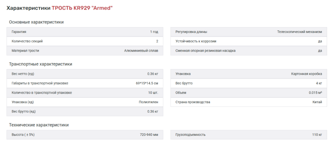 Трость KR929 регулируется по высоте и подходит для пациентов разного роста и комплекции. Настройка производится при помощи кнопочного фиксатора и не требует дополнительных инструментов. Шаг настройки – 2,5 см. Благодаря противоскользящему механизму трость незаменима для зимних прогулок: она обеспечит надежное сцепление со скользкими дорожками. Анатомическая Т-образная рукоятка из пластика удобно размещается в руке и не выскальзывает, обеспечивая правильную опору и безопасное передвижение. Ножка трости оснащена съемным резиновым наконечником, обеспечивающими противоскользящий эффект и надежное сцепление с поверхностью. К тому же такой наконечник защитит пол от царапин и вмятин.